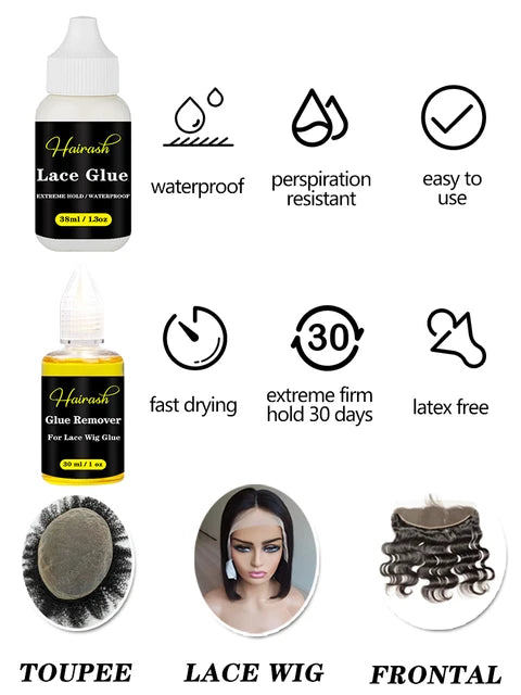 - מסיר דבק: להסרה קלה ובטוחה של הפאה מבלי לגרום נזק לשיער הטבעי או לקרקפת שלך.